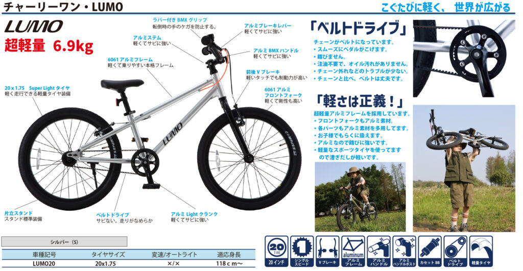 軽さは正義!超軽量こども自転車「LUMO」6061アルミフレーム+ベルトドライブ 超軽量6.9kg こぐたびに軽く、世界が広がる ゴールデンウイークは自転車で冒険に行こう!