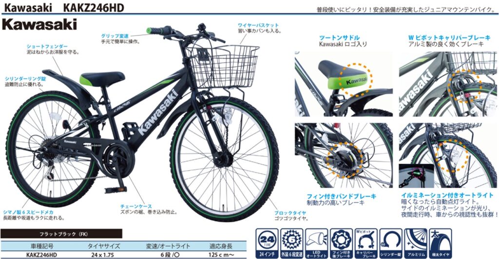 新商品「Kawasaki(カワサキ)」モータースのライセンスモデル!ジュニアマウンテンバイクが入荷しました! 2026年02月8日#新商品のご案内 普段使いにピッタリ!安全装備が充実した「Kawasaki(カワサキ)」ライセンスのジュニアマウンテンバイクです。サイズ/適応身長 24インチ/125cm~のお子様におすすめです! 詳しくは営業担当までお問い合わせください。